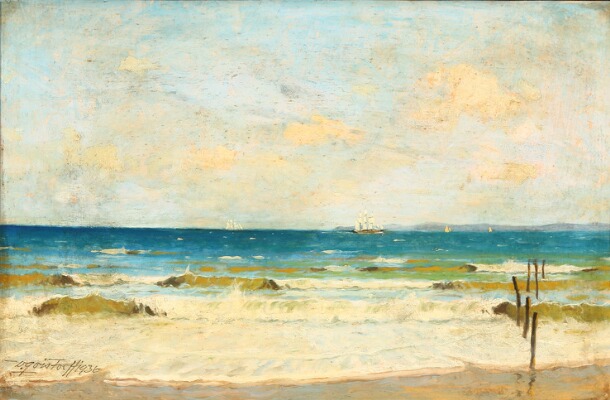 | Seascape with sailing ships in the distance | |