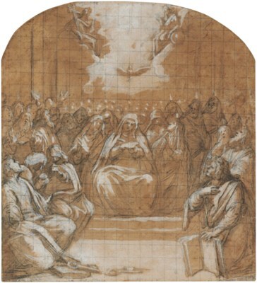 | Chalk brown wash, heightened with white, squared in black chalk, arched top | |