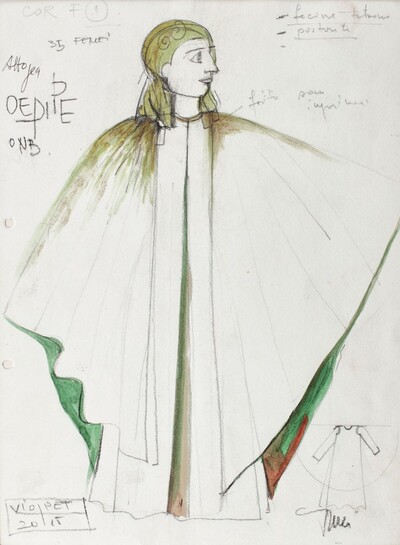 | Schiţă pentru costumele spectacolului "Oedip" de George Enescu, regia Valentina Carascco, Opera Naţională Bucureşti, Viorica Pet | |
