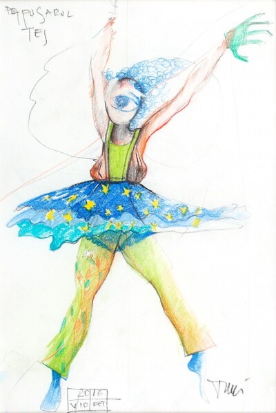 Schiţă pentru costumele spectacolului "Păpuşarul", regia Alexander Hausvater, TES, 2016