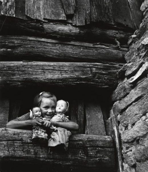 Child hugging her doll, Blue Ridge Mountains, North Carolina