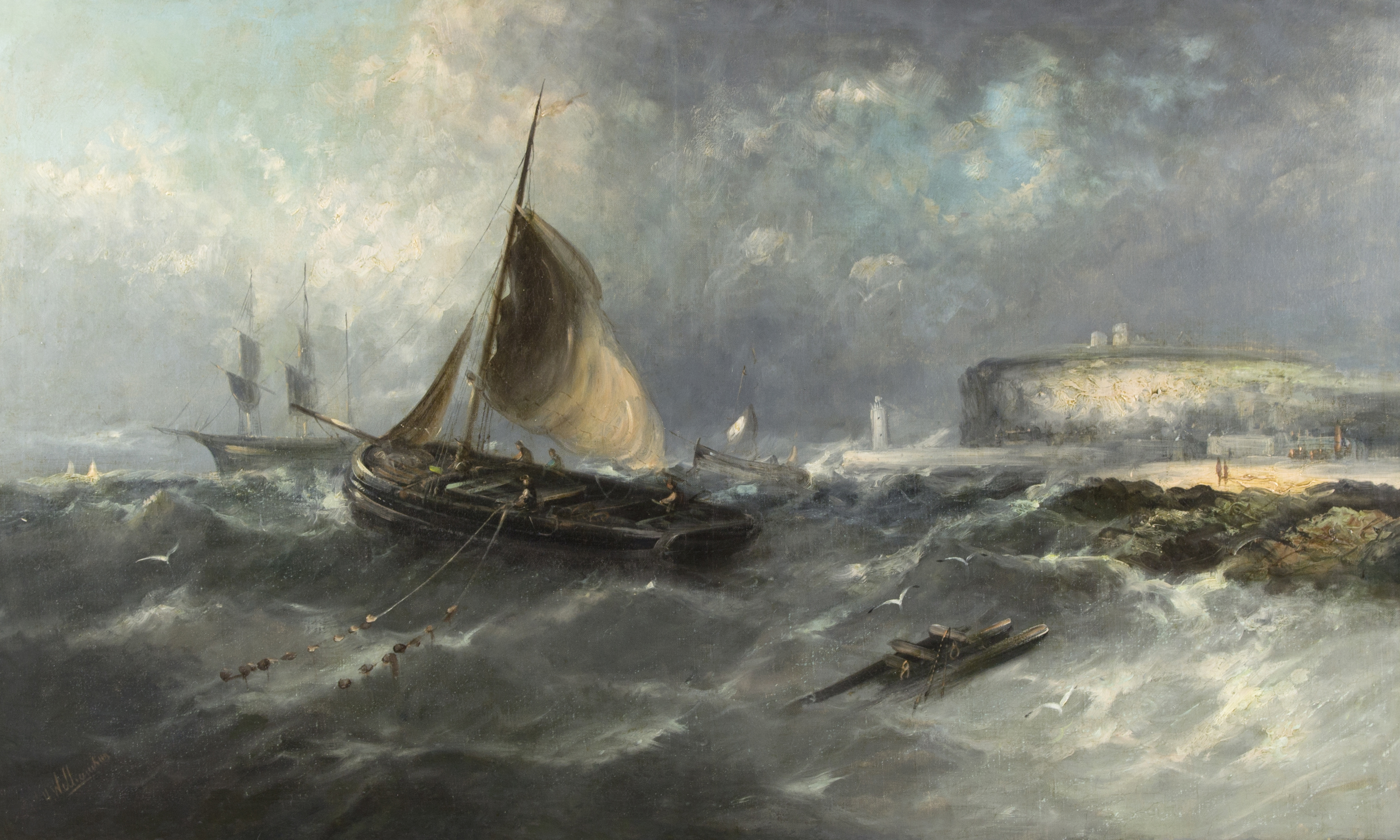 Fishing Vessels off Whitby/with rough seas and stormy skies