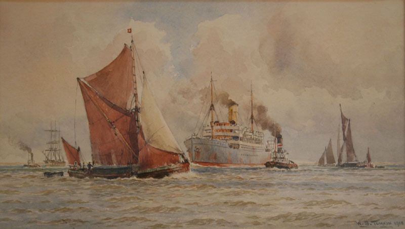 Seascape with Steam Ship, Tug and Sailing Vessels