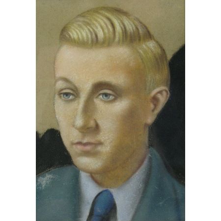 | portrait of R R Dean, head and shoulders depicted wearing a green suit and a blue tie | |