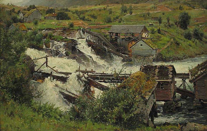 Sägemühle an einem Fluß in Norwegen