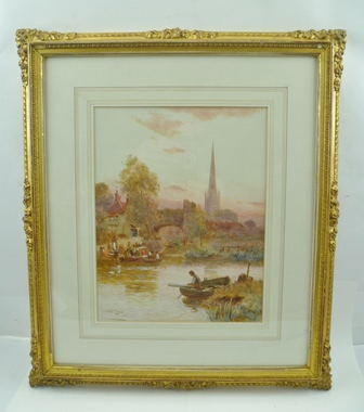 | Norwich from the River, narrow boats, other boats and figures in the foreground | |