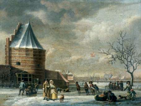 Paysage d'hiver, scène de patinage