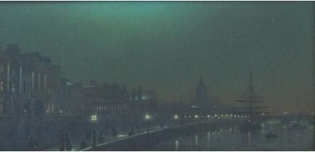 | Moonlit London street scenes "Black Friars Bridge" and "The Victoria Embankment" | |
