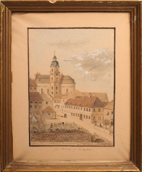 overlooking the old town of Neckarsulm with the church of St. Dionysius and figure accessories