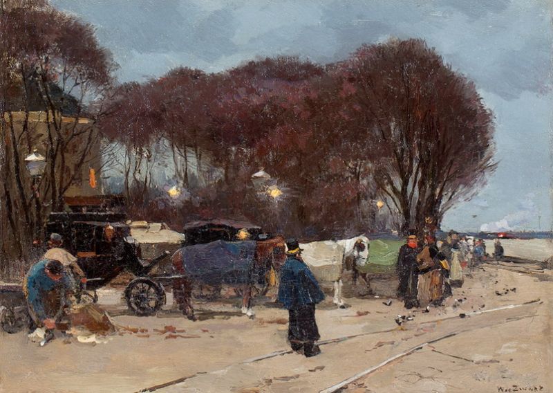 Rijtuigen met wachtende koetsiers, Den Haag of Loosduinen.