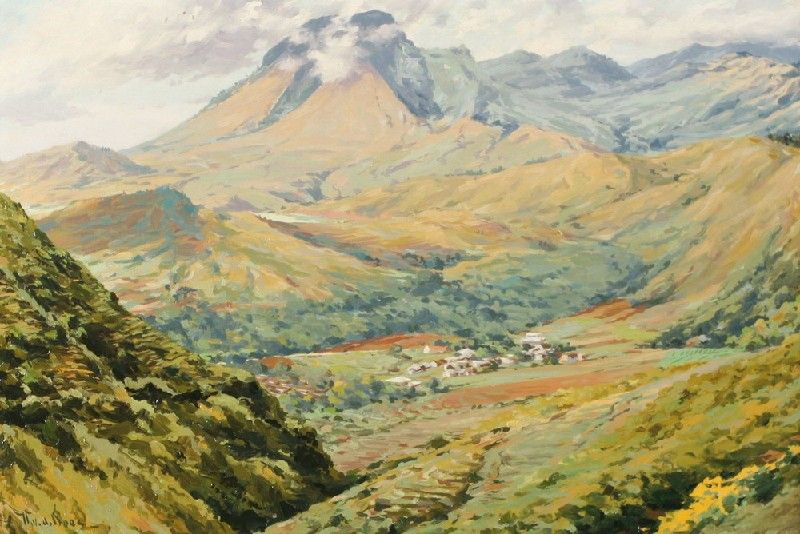 | Bergachtig landschap met dorpsgezicht op Java | |