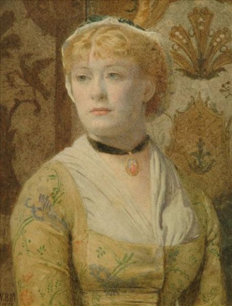 | Portrait of a lady, bust length, wearing a cameo around her neck | |
