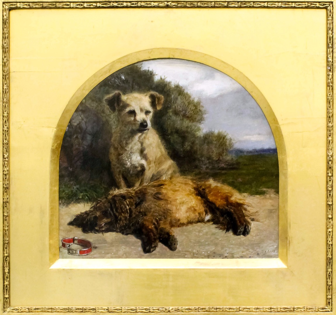 | "Scotch Terriers" - Two terriers on a bank with dog collar to front left foreground | |