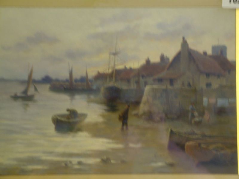 Harbour scene with fishermen bringing home their catch