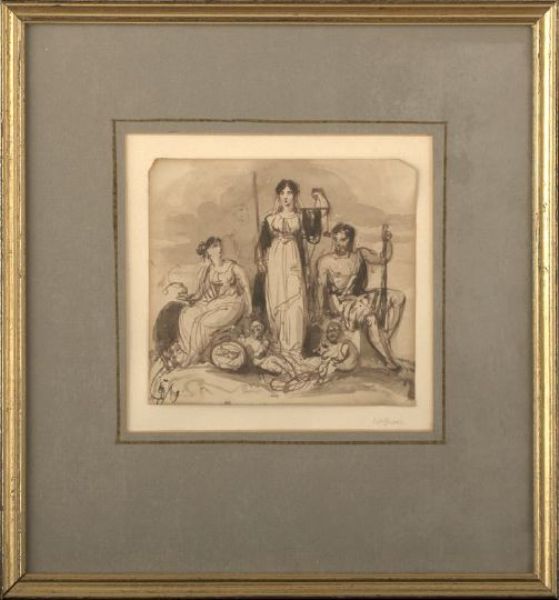 | Ink good ink and sepia wash drawing of an allegorical figure | |