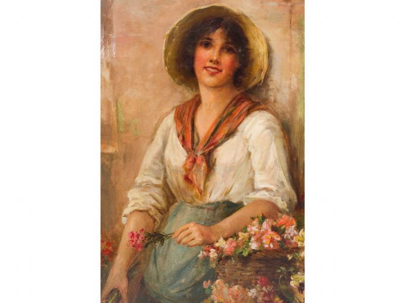 PORTRAIT OF A GIRL WITH A BASKET OF FLOWERS