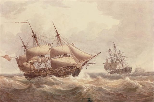 | A Naval squadron reefed down for the impending storm (illustrated); and A brig arriving at her anchorage | |