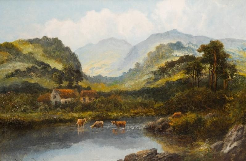 HIGHLAND LANDSCAPE WITH CATTLE WATERING