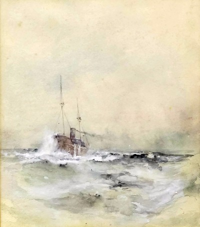 | Masted steamship in a stormy sea | |