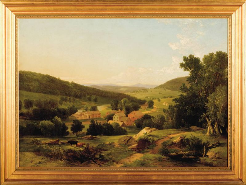 CONNECTICUT RIVER VALLEY LANDSCAPE WITH VILLAGE AND COWS AT PASTURE