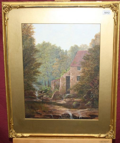 study of a watermill in wooded landscape