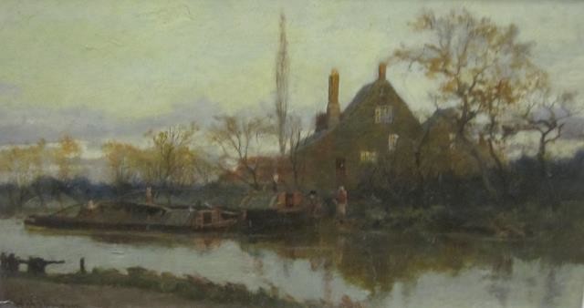 A Canal view with figures by a barge, recto
