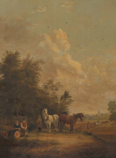 Horses and figures in a rural landscape