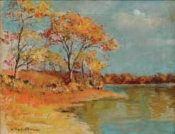 LANDSCAPE WITH TREES BESIDE A LAKE.