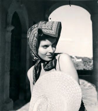Élégante au foulard sur la Côte d'Azur, vers 1960