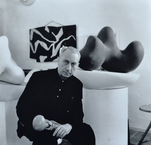 Hans Arp in seinem Atelier in München