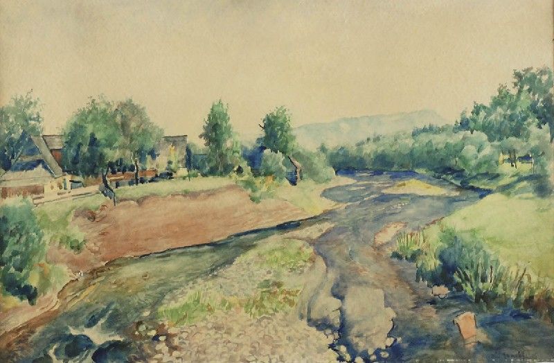 Pejzaż wiejski z rzeką