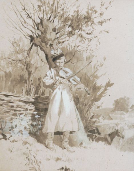 Wiejski skrzypek w stroju krakowskim