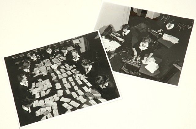 | Pair of Photographs of Bank Workers Sorting Cheques | |