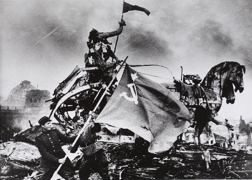AUF DEM BRANDENBURGER TOR, BERLIN, APRIL 1945