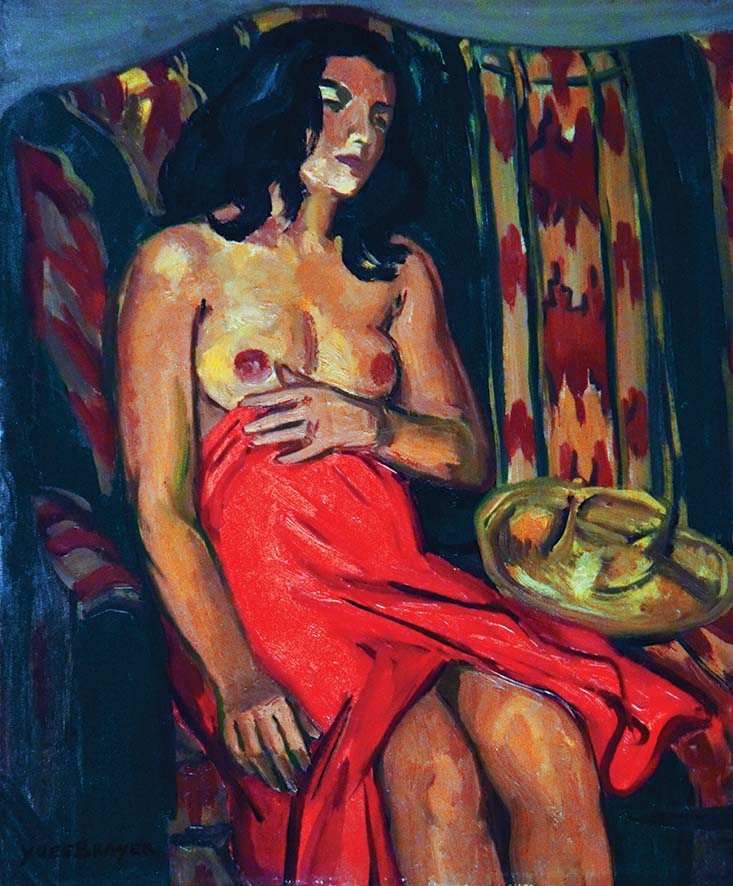 Nu à la Draperie Rouge Hst de Yves Brayer