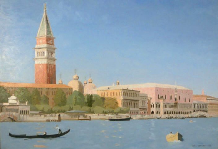 | Vue du grand canal de Venise et le campanile de Saint-Marc depuis la Punta della Dogana | |