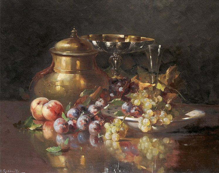 A Redtwitz ( 1871 - 1965 ) was a painter. A Redtwitz s works have been put up for auction numerous times, with realized prices surpassing estimated prices, varying from 241.58 USD for Still life of basket of fruit and drinking vessels on a table top in 2004 to 111616.04 USD for Asztali csendélet in 2006 , based on the size and medium of the artwork.