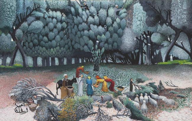 Ahmed Krifla ( 1936 - ) is a painter. Ahmed Krifla s works have been put up for auction numerous times, with realized prices surpassing estimated prices, varying from 2381.34 USD for Paysage de montagne in 2007 to 6284.34 USD for Les tailleurs, 1976 in 2007 , based on the size and medium of the artwork.