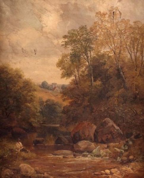 E Austin ( - ) is a British painter. E Austin s works have been put up for auction numerous times, with realized prices varying from 103.97 USD for Figures Before a Thatched Cottage in 2004 to 148.75 USD for Children at rivers edge at a weir, mountain background in 2006 , based on the size and medium of the artwork.