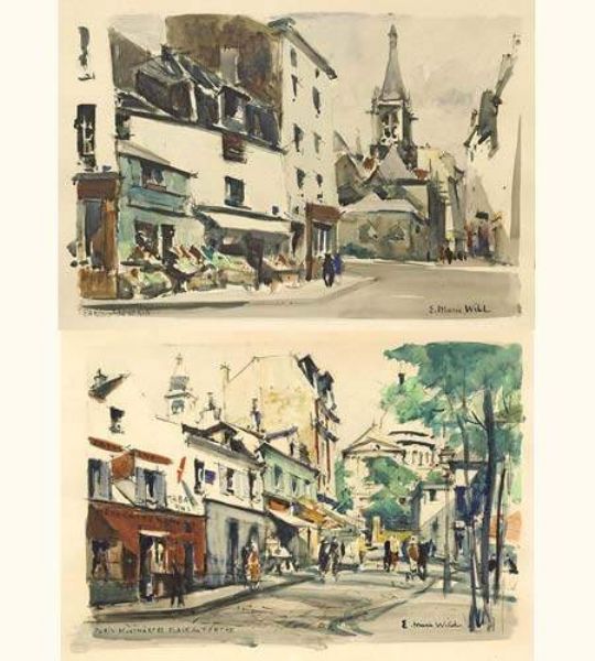 E Marie Wild ( 1900 - ) is a French painter. E Marie Wild s works have been auctioned off multiple times, with realized prices varying according to the size and medium of the artwork, for instance of 185 USD for Pair of Parisian Watercolor Scenes in 2005