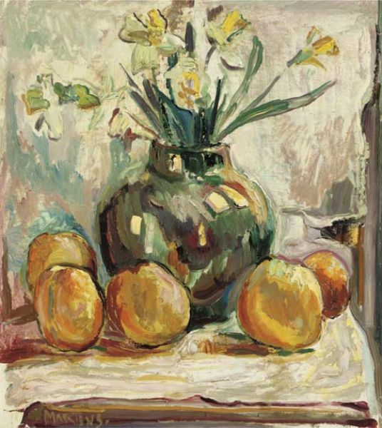 George Martens ( 1894 - 1979 ) was a Dutch painter. George Martens s works have been put up for auction numerous times, with realized prices surpassing estimated prices, varying from 2965.02 USD for A still life with fruits, flowers and a bottle in 2004 to 11498.84 USD for SCHAAL MET VRUCHTEN in 2005 , based on the size and medium of the artwork.