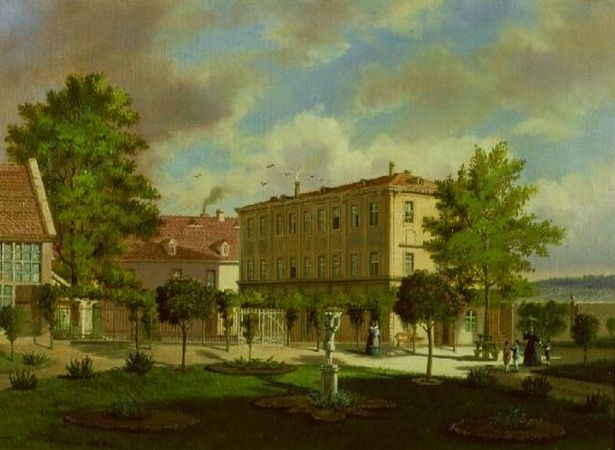 Gustav Adolf Hahn ( 1819 - 1872 ) was a German painter. Gustav Adolf Hahn s works have been auctioned off multiple times, with realized prices varying according to the size and medium of the artwork, for instance of 4500 USD for VIEW OF A GERMAN TOWN and THE GARDENS OF A GERMAN TOWN SQUARE: TWO in 2006