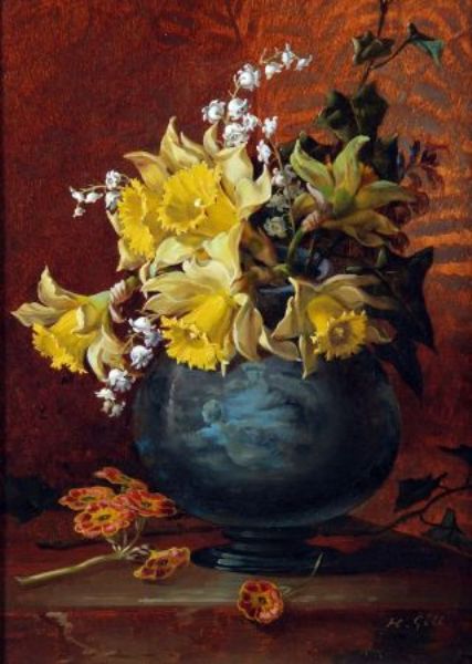 H Gill ( - ) is a painter. H Gill s works have been put up for auction numerous times, with realized prices varying from 58.7 USD for An extensive pastoral landscape with a figure on a track in 2005 to 254.21 USD for Still Life Study of Mixed Flowers in a Vase on a Ledge in 2012 , based on the size and medium of the artwork.