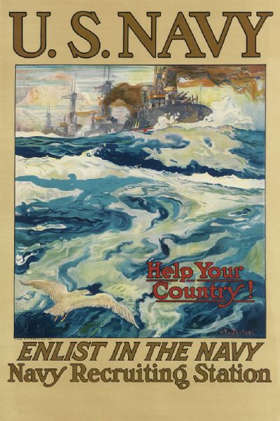 Henry Reuterdahl ( 1871 - 1925 ) was a Swedish painter. Henry Reuterdahl s works have been put up for auction numerous times, with realized prices surpassing estimated prices, varying from 468 USD for illustration of pirates battling a U.S. sailing ship crew in 2006 to 2000 USD for U.S. NAVY / HELP YOUR COUNTRY! in 2014 , based on the size and medium of the artwork.