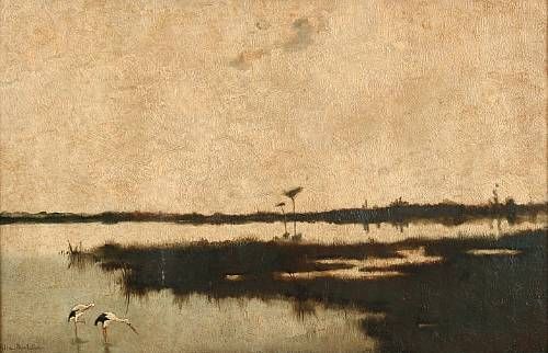 Hilda Montalba ( - 1919 ) was a British painter. Hilda Montalba s works have been put up for auction numerous times, with realized prices surpassing estimated prices, varying from 62.28 USD for Extensive lake landscape with storks in 2005 to 1235.86 USD for Cranes on the lagoon in 2013 , based on the size and medium of the artwork.