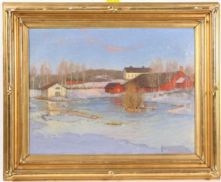 Hjalmar Linde ( 1867 - 1948 ) was a painter. Hjalmar Linde s works have been auctioned off multiple times, with realized prices varying according to the size and medium of the artwork, for instance of 1331.4 USD for Gårdsmotiv i vinterlandskap in 2006