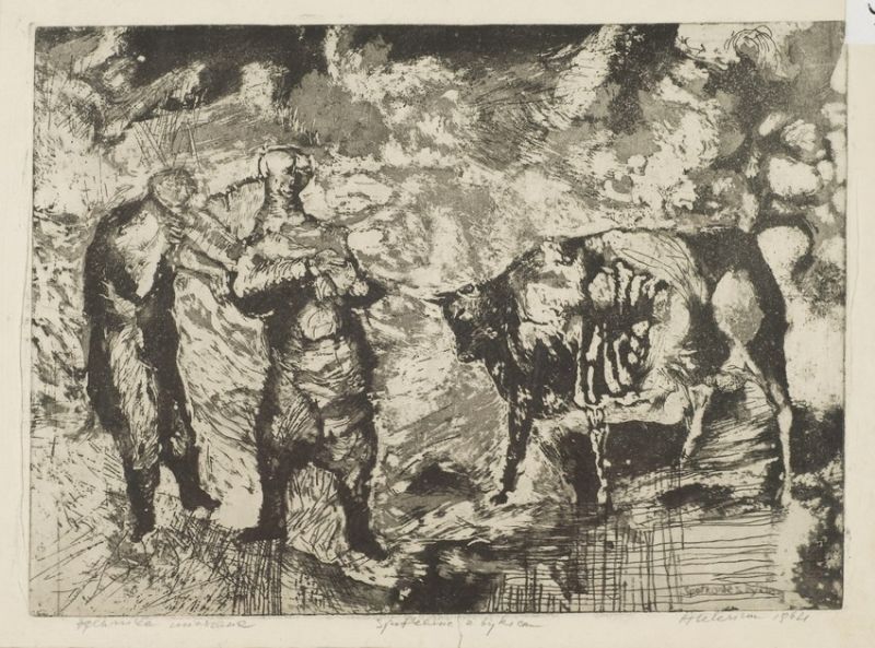 Jan Jaromir Aleksiun ( 1940 - ) is a Polish painter. Jan Jaromir Aleksiun s works have been put up for auction numerous times, with realized prices surpassing estimated prices, varying from 118.91 USD for Rest is Silence ar. 1974 in 2005 to 248.02 USD for Seans in 2006 , based on the size and medium of the artwork.