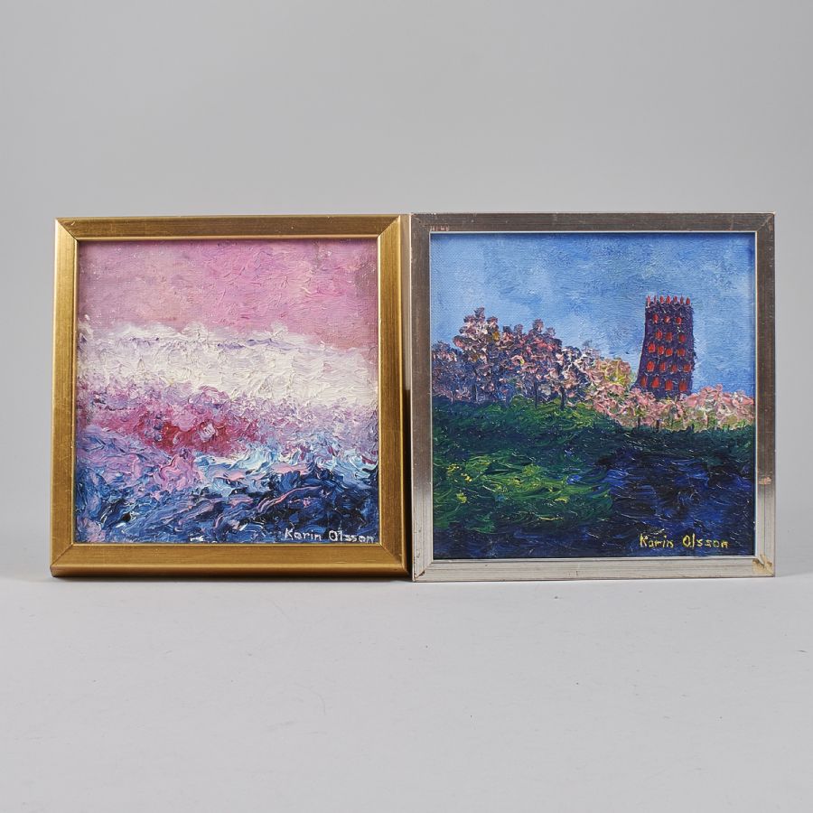 Karin Olsson ( 1928 - 2006 ) was a Swedish painter. Karin Olsson s works have been put up for auction numerous times, with realized prices surpassing estimated prices, varying from 164.05 USD for Sommartorp in 2005 to 773.83 USD for Gammal trädgård I in 2010 , based on the size and medium of the artwork.
