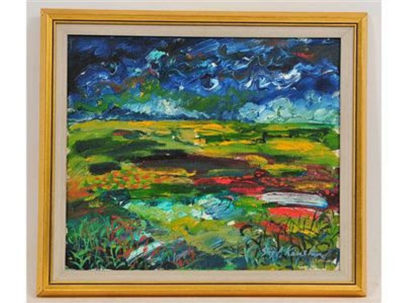 Stig Kärrstrand ( - ) is a painter. Stig Kärrstrand s works have been put up for auction numerous times, with realized prices surpassing estimated prices, varying from 142.02 USD for idyll in fara in 2008 to 344.69 USD for Landskap in 2011 , based on the size and medium of the artwork.