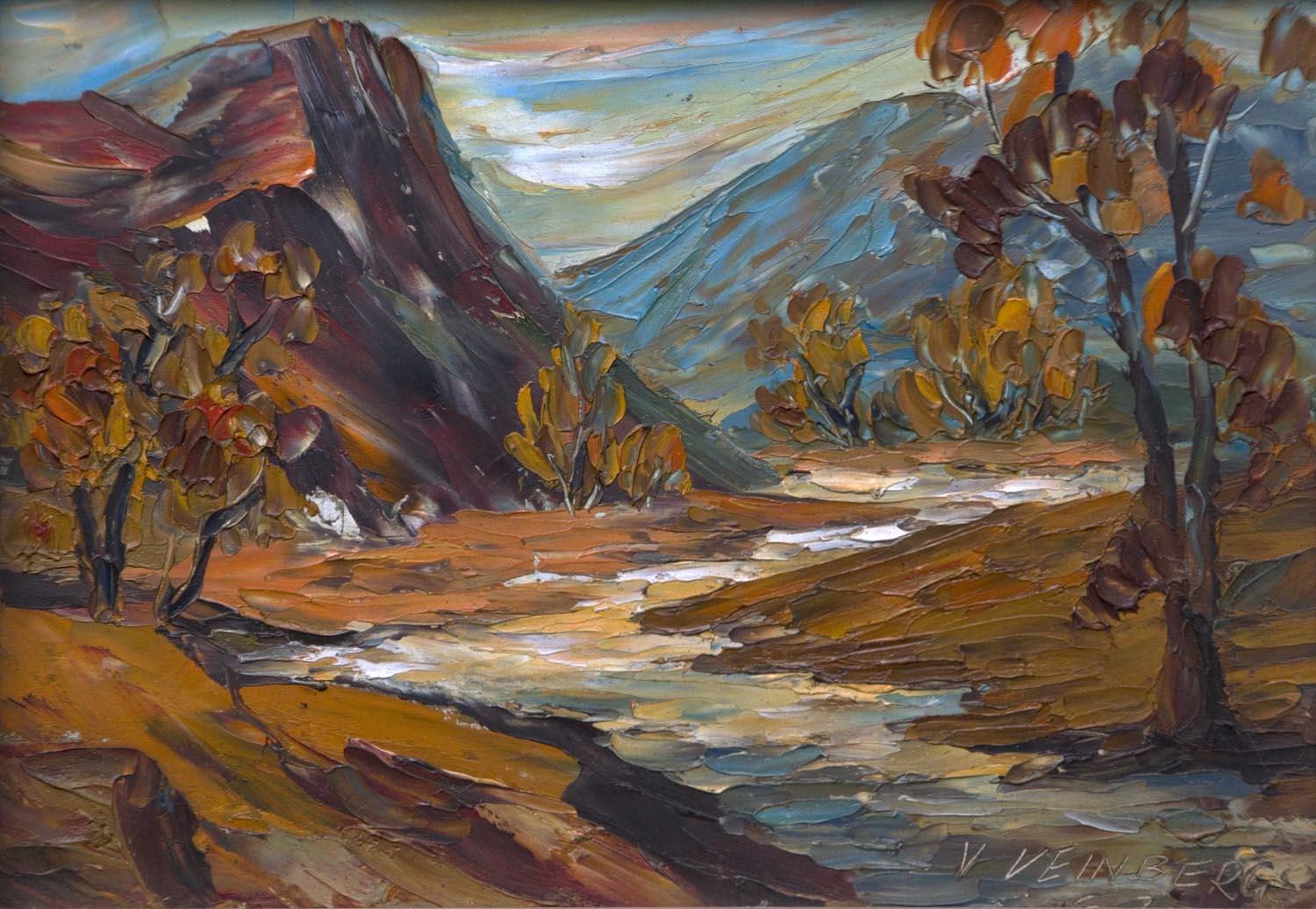 V VEINBERG ( - ) is a painter. V VEINBERG s works have been auctioned off multiple times, with realized prices varying according to the size and medium of the artwork, for instance of 397 USD for Landscape 1967 in 2016